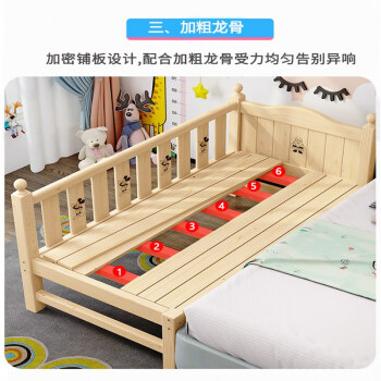 Good Kids Customized Crib with Storage Widened Bed Solid Wood Children's Bed with SafetyConvertible Crib Side Bed Baby Small Bed Combined with Big Bed Three Guarded Bars 200 Length, 100 Width, and High Remarks [Image Price Brand Quotation]-